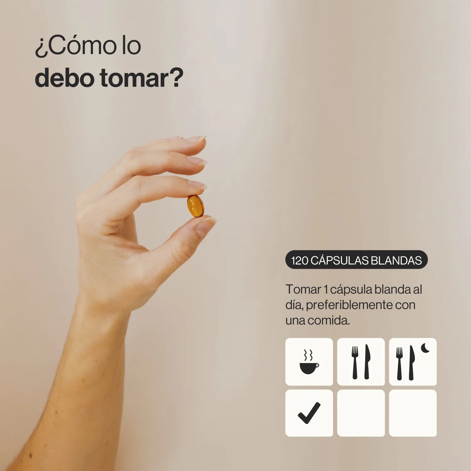 Tomar 1 cápsula blanda al día, preferiblemente con una comida.