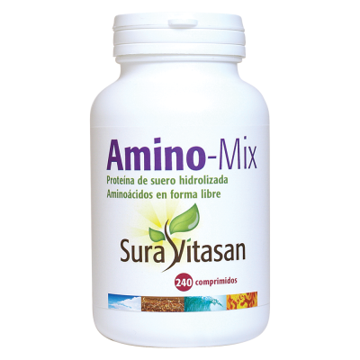Amino-Mix es un complejo de aminoácidos en forma libre procedentes de la Proteína de Suero Hidrolizada que incluye todos los aminoácidos esenciales y ramificados. Para la obtención de los aminoácidos, las proteínas de suero se descomponen con la ayuda de las enzimas (proteasa). A través de esta hidrólisis los aminoácidos se asimilan más fácilmente por el organismo. Los aminoácidos son el componente básico de las proteínas y son importantes en numerosas reacciones químicas y por lo tanto para la correcta biología del organismo.