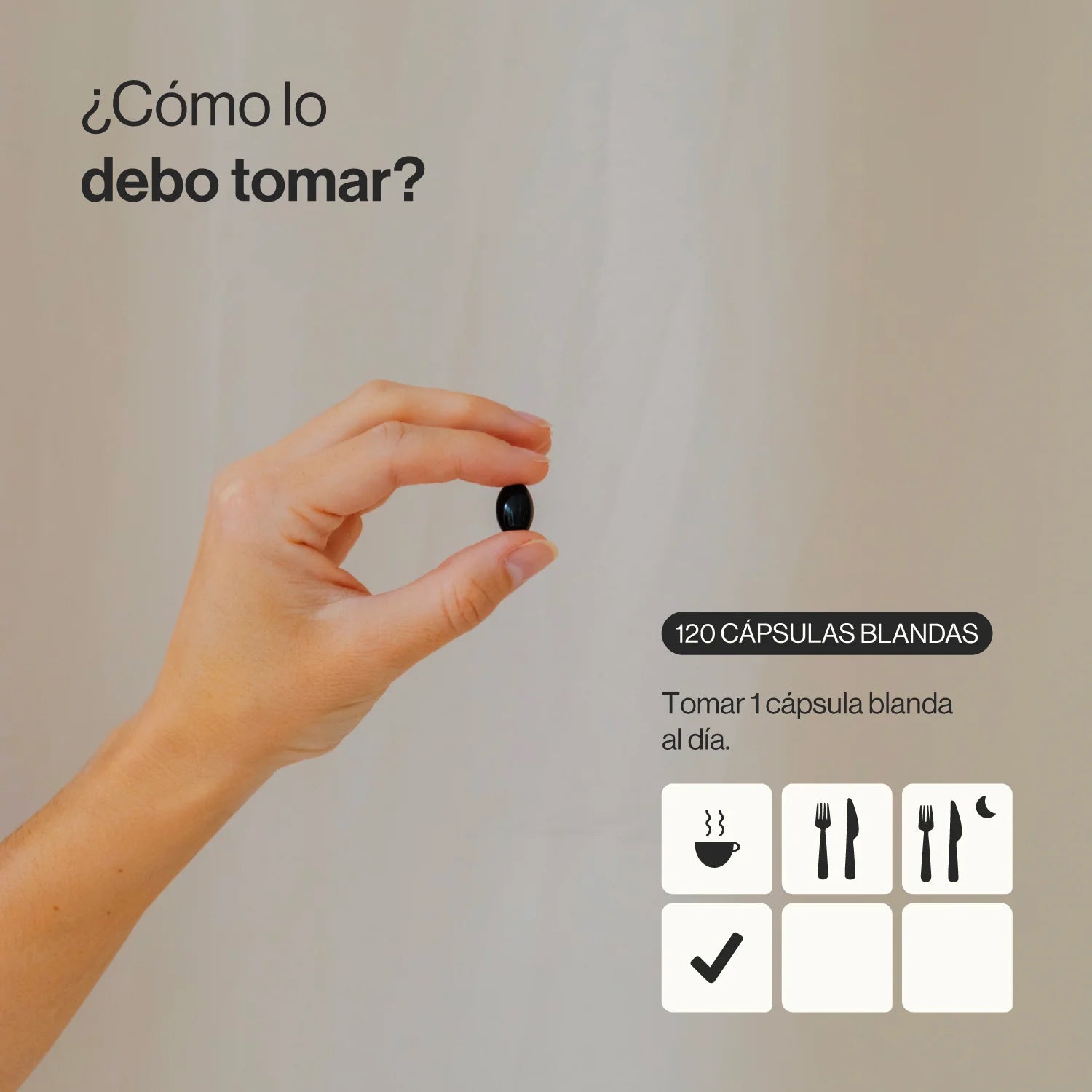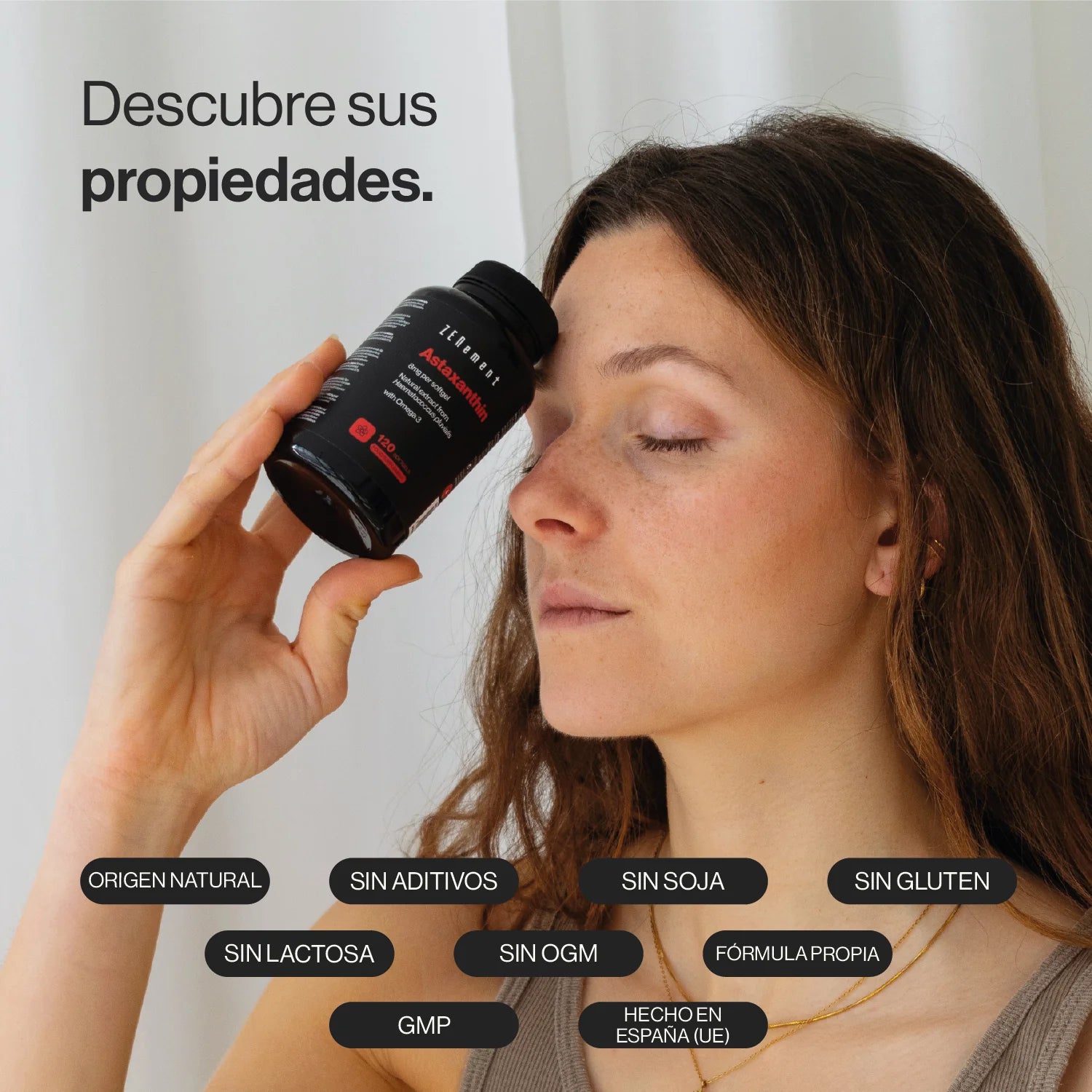 - Con Ácidos Grasos Esenciales Omega 3: La Astaxantina está formulada con aceite de pescado salvaje, proporcionando 270 mg de Omega 3 (157,5 mg de EPA y 112,5 mg de DHA) por cápsula blanda, lo que mejora su absorción al ser una molécula liposoluble.
