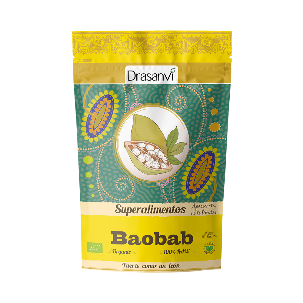 El árbol Baobab es característico de la Sabana Africana. Produce un fruto cuya pulpa es suave y nutritiva El polvo obtenido ofrece un alto perfil de micronutrientes: vitaminas y minerales, y un altísimo valor en fibra. El Baobab también tiene un sabor cítrico agradable, por lo que es una excelente opción para agregar a una amplia gama de alimentos y bebidas: batidos, zumos, yogures, postres y ensaladas de frutas.