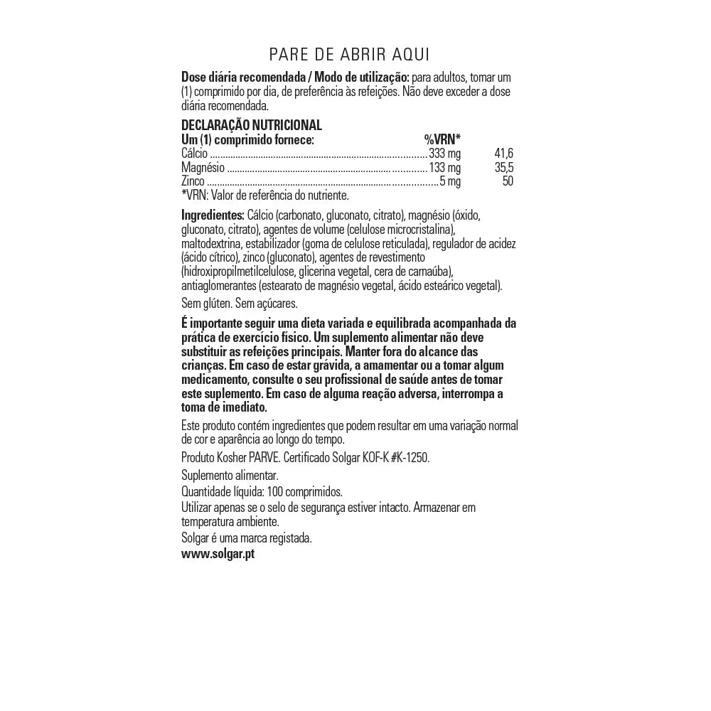 Esta fórmula aporta 1000 mg de calcio, 400 mg de magnesio y 15 mg de zinc por cada 3 comprimidos. Es una combinación de nutrientes ideal para contribuir al mantenimiento de los huesos y los músculos de adultos de todas las edades.