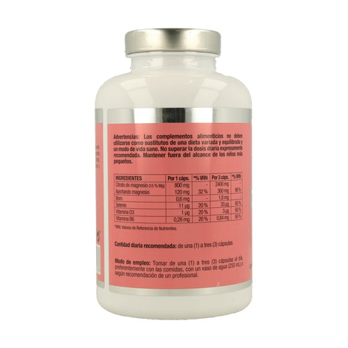 citrato de magnesio, *agente de recubrimiento (hidroxipropilmetilcelulosa), borato sódico, antiaglomerante (estearato de magnesio), agente de carga (celulosa microcristalina), L-selenometionina, *colorante (dióxido de titanio), colecalciferol y clorhidrato de piridoxina.