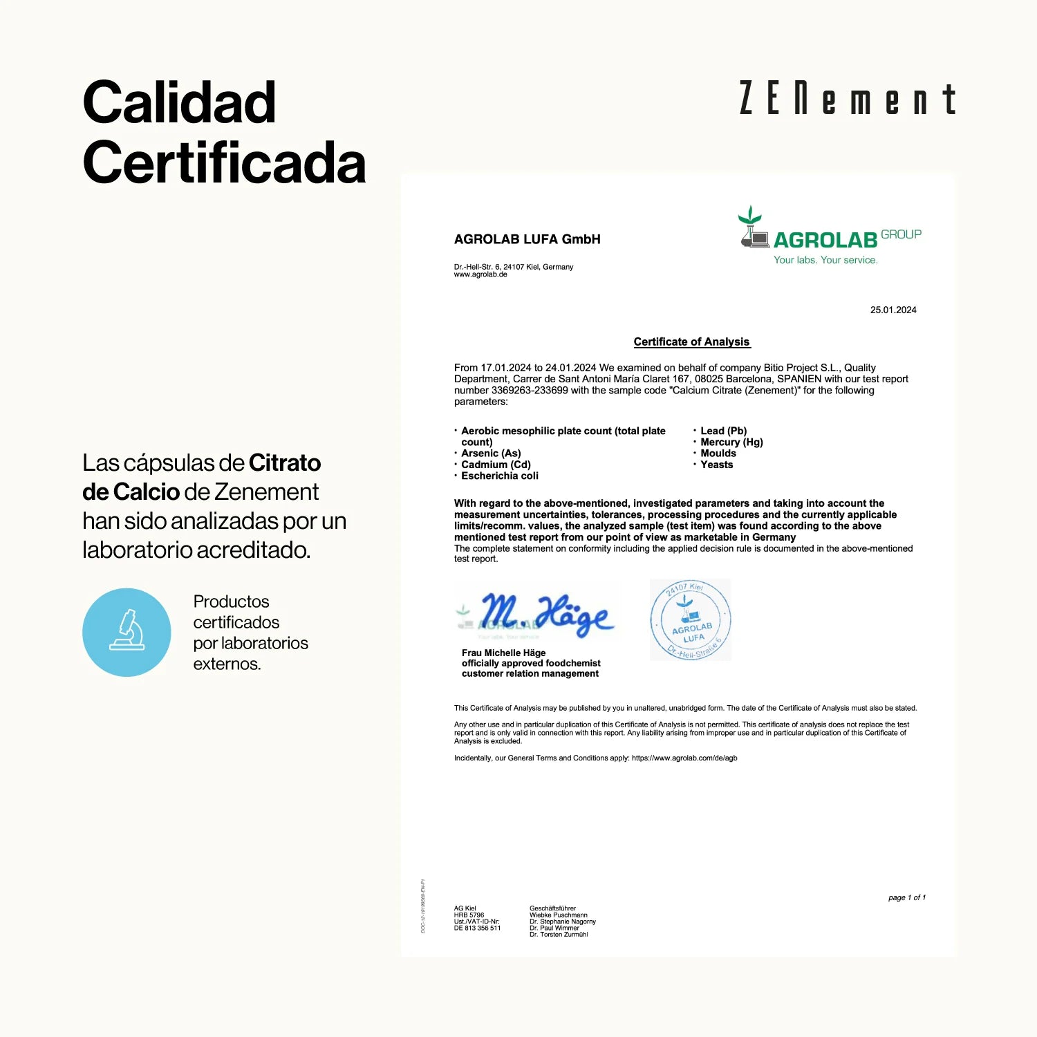 Óptima Absorción, Mejor Tolerancia - Nuestro suplemento de Calcio se presenta en forma de Citrato, forma orgánica que asegura una absorción óptima y una mayor tolerancia en comparación con otros productos u otras sales de Calcio. Además, ofrecemos 120 cápsulas Vegetarianas en lugar de comprimidos, lo que facilita su ingesta. ¡La opción más cómoda para tu rutina diaria!