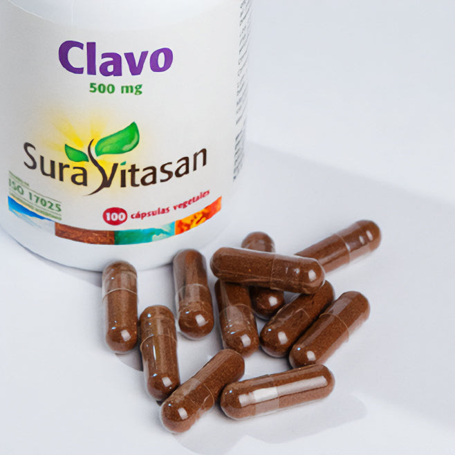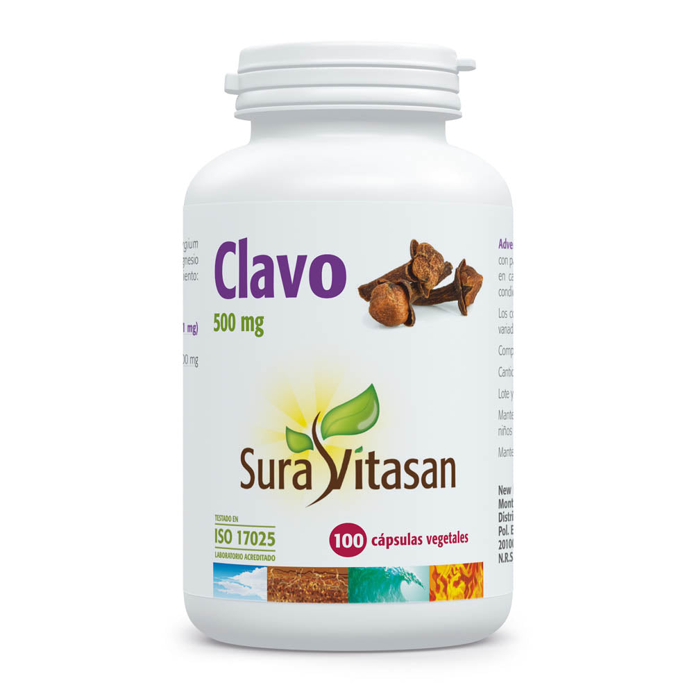 Ingredientes: clavo fresco molido (Syzygium aromaticum), antiaglomerante (sales magnésicas de ácidos grasos), cápsula vegetal (agente de recubrimiento: pululano; humectante: agua purificada)