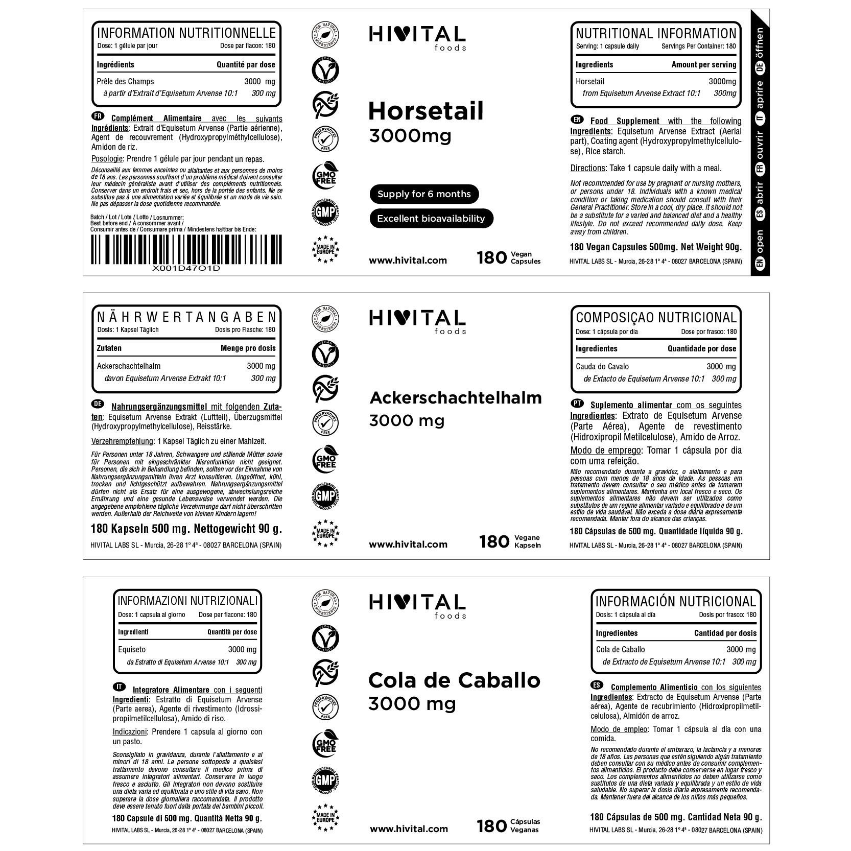 FABRICADO EN ESPAÑA bajo certificados GMP e ISO | Hivital Foods está registrada en AECOSAN con número 26.019181B.