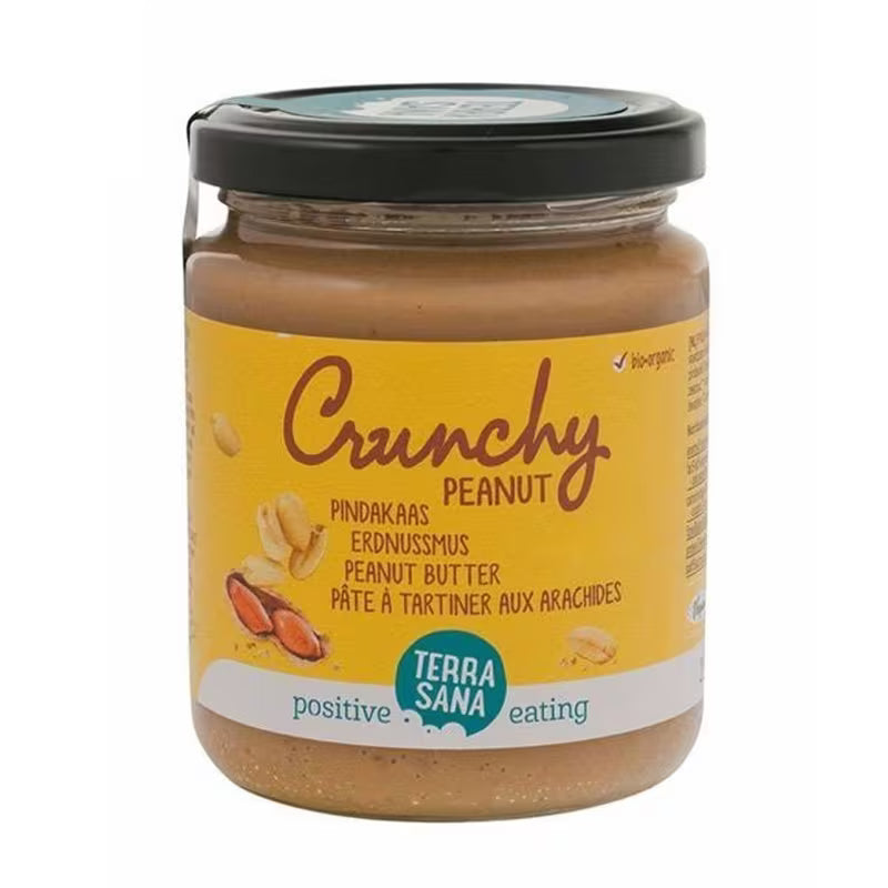 No todos los cacahuetes son iguales. La variedad de cacahuete que utilizamos para nuestra crema de cacahuete biológica proporciona un sabor agradable y pleno y una consistencia especial. Los pequeños trozos de cacahuete procuran una contextura crujiente. Esta crema de cacahuete es pura, biológica y casera. No solo es deliciosa en el pan, tostadas o crackers, sino también como base para productos horneados como el pan de plátano y platos salados como la sopa de cacahuetes. ¡Prueba nuestras otras 16 cremas de frutos secos!