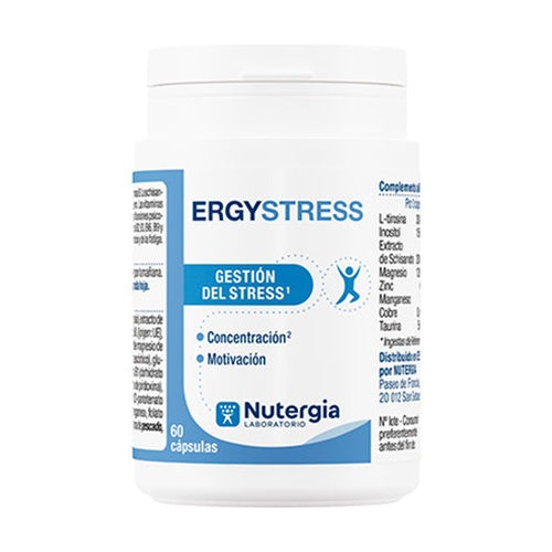 Ergystress de Nutergia es un complemento alimenticio que contribuye al mantenimiento normal del sistema nervioso.