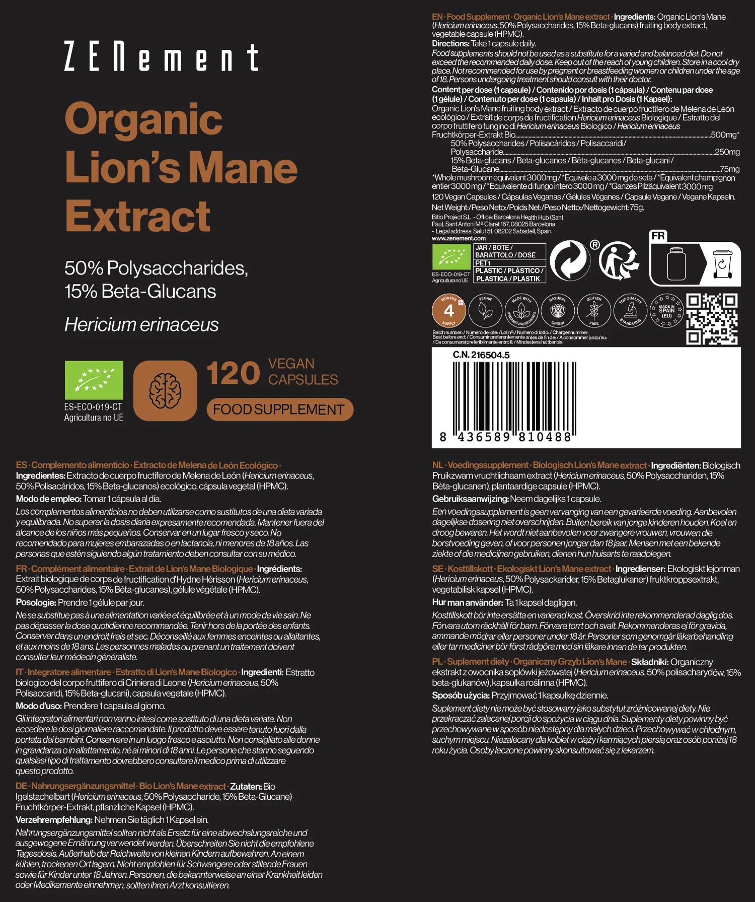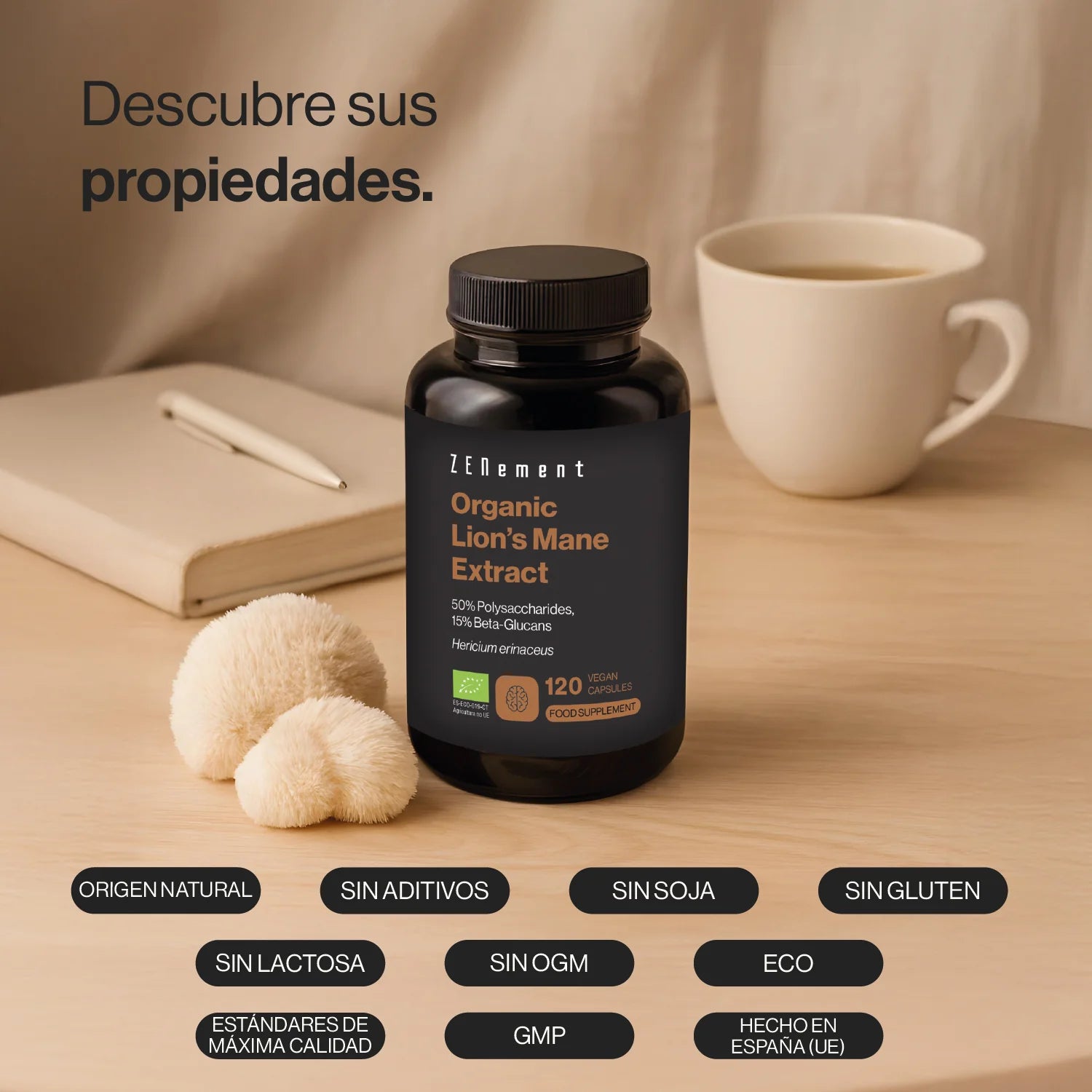 - CON UN 50% POLISACÁRIDOS Y 15% BETA-GLUCANOS: Los hongos medicinales como el lion mane son conocidos por su alto contenido de Polisacáridos y beta-Glucanos. Nuestro suplemento usa un extracto estandarizado en un 50% de polisacáridos y 15 beta-glucanos. Además, a diferencia de otros suplementos de Melena de León, nuestro producto es 100% Ecológico.