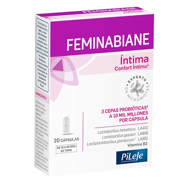 PiLeJe ha desarrollado Feminabiane Intima, un complemento alimenticio a base de 3 cepas probióticas2 dosificadas a 10 mil millones por cápsula, para ayudar a las mujeres a sentirse más cómodas en su bienestar íntimo: