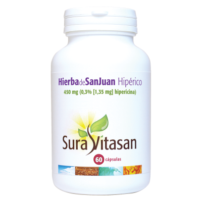 Hierba de San Juan Hipérico es un complemento alimenticio a base de un extracto de máxima calidad y potencia de la hierba de San Juan o Hipérico (Hipericum perforatum L.) es una planta muy conocida y utilizada en medicina natural. Cada cápsula contiene 450 mg de un extracto estandarizado al 0,3% de hipericina que equivale a 1,35 mg de hipericina.