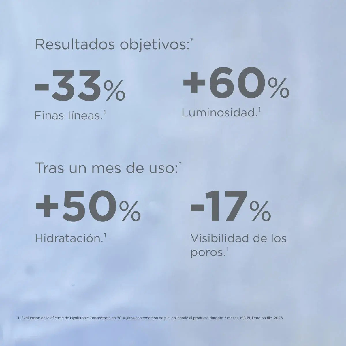 Hidrata tu piel en profundidad con Hyaluronic Concentrate, el sérum facial con ácido hialurónico puro. Ayuda a rellenar la piel, prevenir las primeras arrugas y a disminuir la apariencia de los poros. Incrementa la hidratación en un +49% desde la primera aplicación¹.