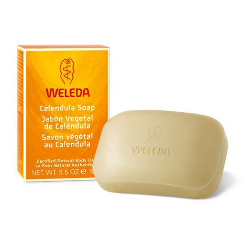 jabón de aceites de palma, coco y oliva; agua, glicerina, aceites esenciales naturales, extractos de flores de caléndula y manzanilla, rizoma de iris, pensamiento silvestre, arroz y malta, cloruro de sodio.