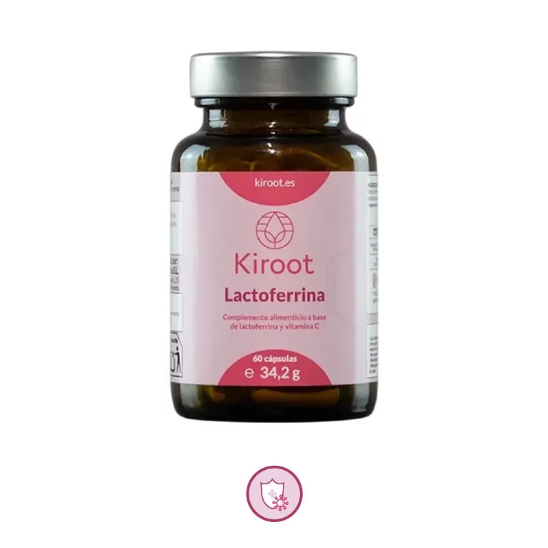 Lactoferrina 300 mg Kiroot es un complemento alimenticio a base de lactoferrina (NatraFerrin® lactoferrin, 95% lactoferrina), una proteína de origen lácteo con múltiples propiedades y vitamina C.
