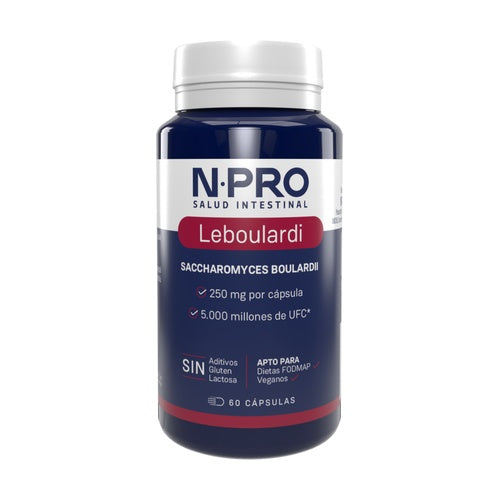NPRO Leboulardi, es un complemento alimenticio que contiene Saccharomyces boulardii, una levadura probiótica que aporta beneficios al tracto digestivo inhibiendo el crecimiento de microrganismos patógenos y parásitos oportunistas.