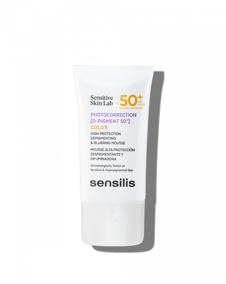 La primera mousse SPF50+ con color que protege frente al UVA, UVB y la luz azul y corrige y difumina las manchas en pieles sensibles hiperpigmentadas de cualquier edad. Formulada con Extracto Biofermento de Esclarea y Vitamina C, por su acción despigmentante en la melanogénesis que ayuda a unificar el tono de la piel y a aportarle luminosidad; Vitamina C y E, por su efecto antioxidante y con filtros no potencialmente disruptores endocrinos, no solubles al agua y no nanos.