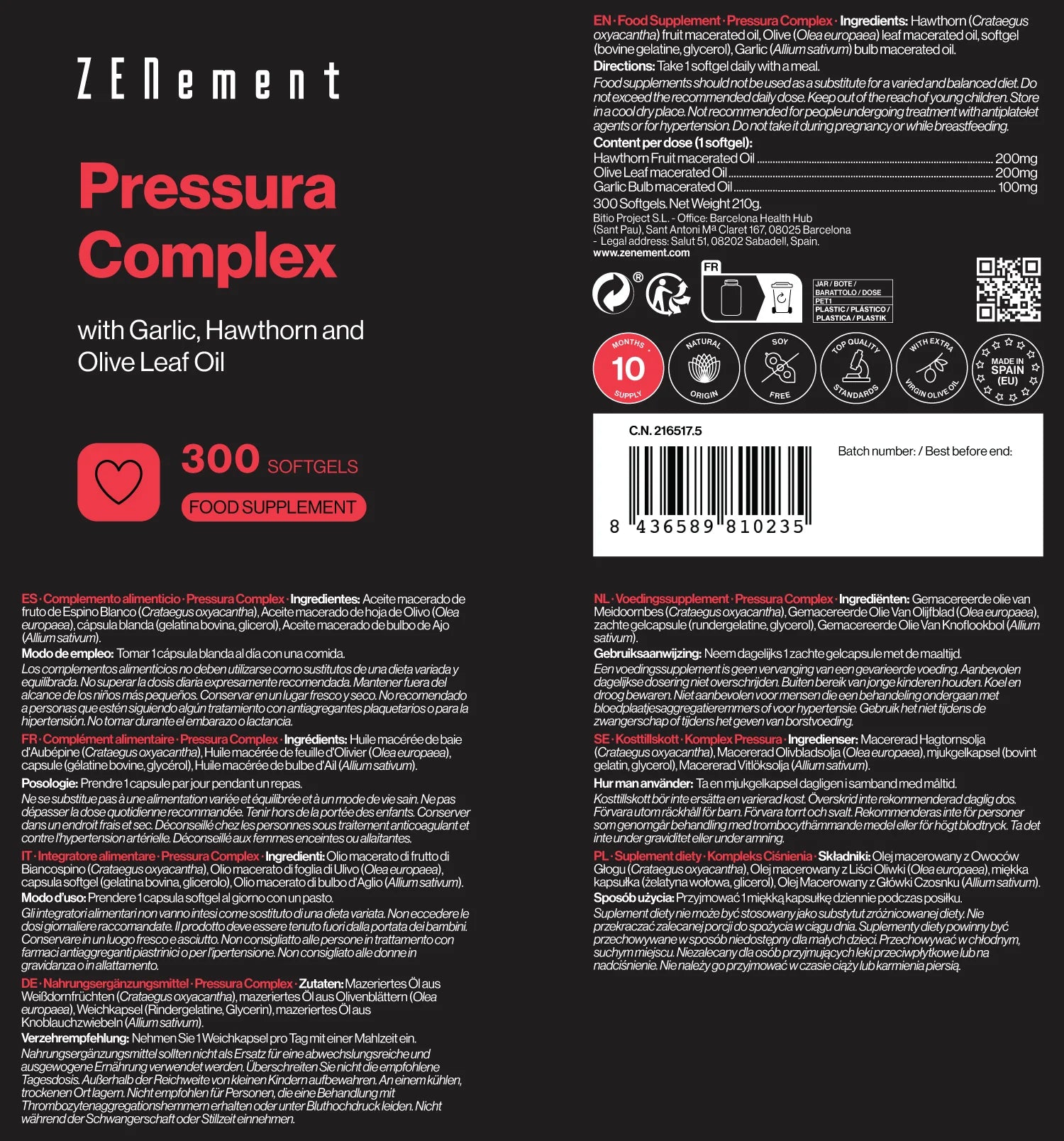 Pressura Complex con Aceite de Ajo, Espino Blanco y Hojas de Olivo - 300 Softgels