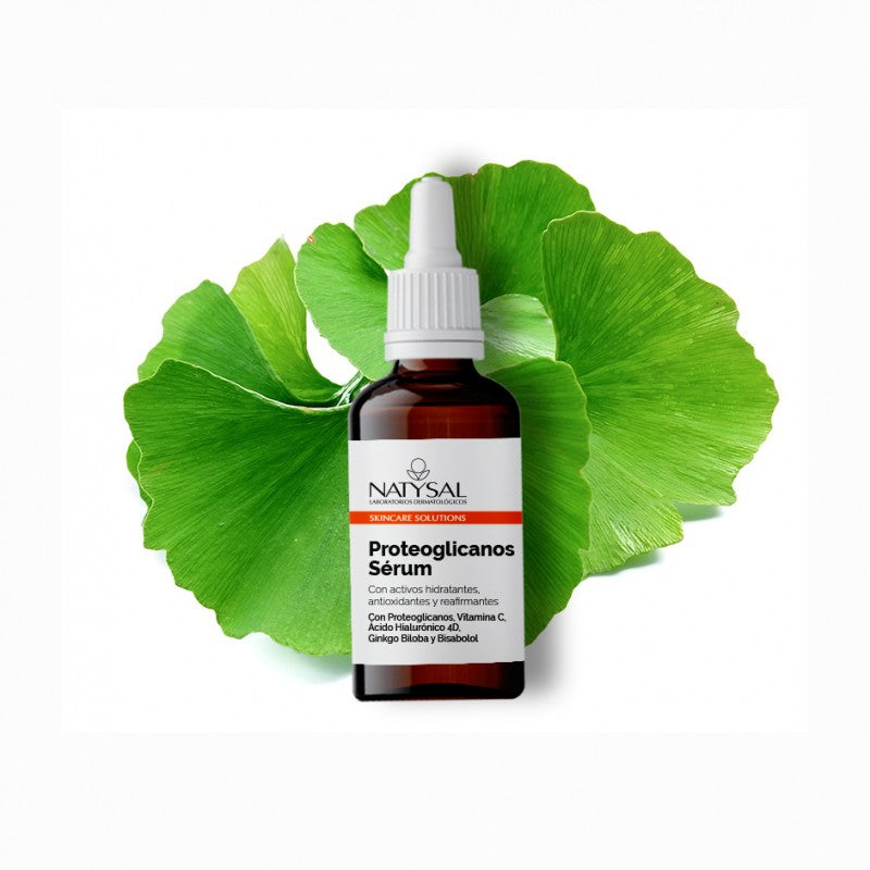 DERMATOLÓGICAMENTE TESTADO EN PIELES SENSIBLES, el Sérum de Proteoglicanos Natysal contiene activos que ayudan a recuperar la elasticidad y firmeza con un aporte extra de luminosidad. Con Proteoglicanos, Vitamina C, Ácido Hialurónico 4D, Ginkgo Biloba y Bisabolol.