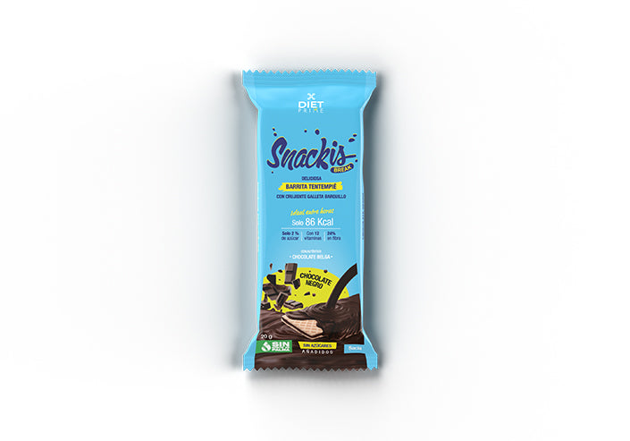 Deliciosa barrita saciante para los amantes del chocolate negro. Con delicioso barquillo crujiente.
