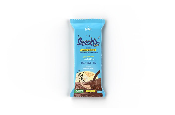 Deliciosa barrita saciante para los amantes del chocolate con leche, con sabor a vainilla. Con delicioso barquillo crujiente.