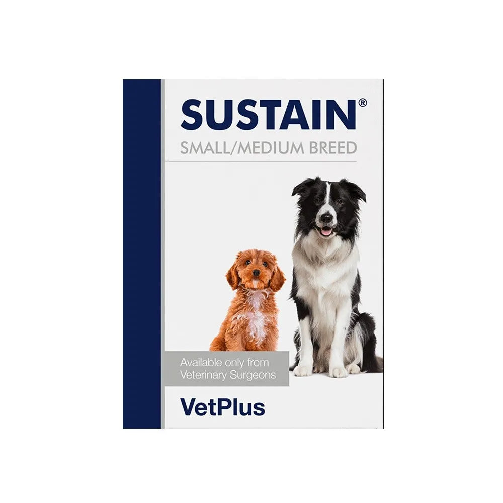 COMPOSICIÓN: Enterococus faecium, Bacillus subtilis, Inulina, Beta-glucano, L-Threonina, Zinc, D-pantotenato de Calcio, Hidrocloruro de piridoxina, Ácido fólico, Cianocobalamina. Caja de 30 sobres de 2,7 g de polvo beige, que puede echarse sobre el alimento. POSOLOGÍA: perros -20 kg, 1 sobre razas pequeñas/medianas al día, perros 20-40 kg, 1 sobre razas grandes al día, perros +40 kg, 2 sobres de razas grandes al día. SUSTAIN es un probiótico dual que combina los beneficios de las dos especies de probióticos autorizados, con un prebiótico e inmunoesstimulante, para promover la salud gastrointestinal e inmunitaria. Los probióticos son microorganismos vivos que pueden modificar positivamente la microbiota intestinal mediante varios modos de acción. Como la microbiota juega muchos papeles en la protección del cuerpo y en la estimulación del sistema inmune, esto puede tener una variedad de beneficios sistémicos, así como el mantenimientos de la salud intestinal.