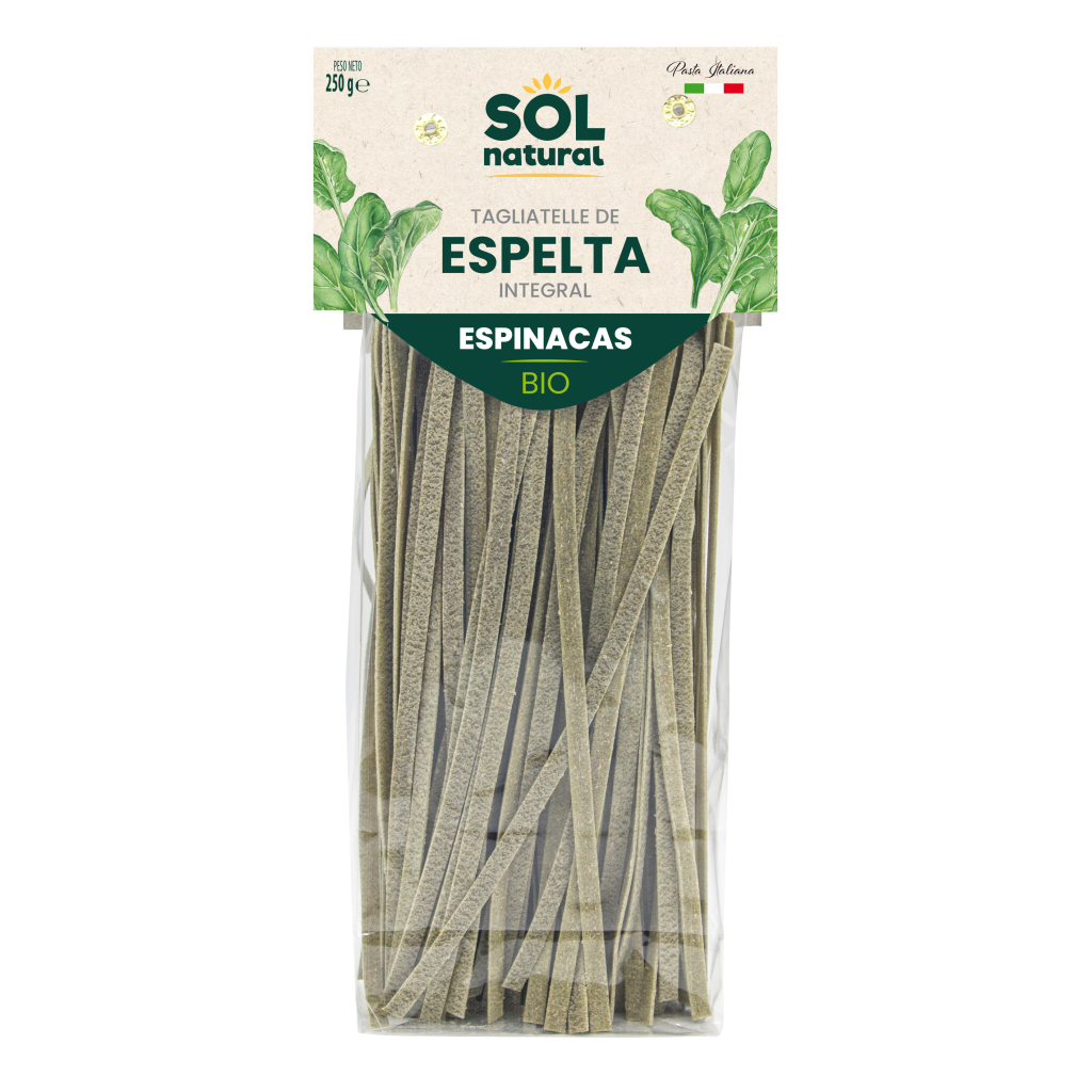 Harina de TRIGO ESPELTA* Integral, Espinacas* 2%, Agua. Cocción en 4-6 Minutos.