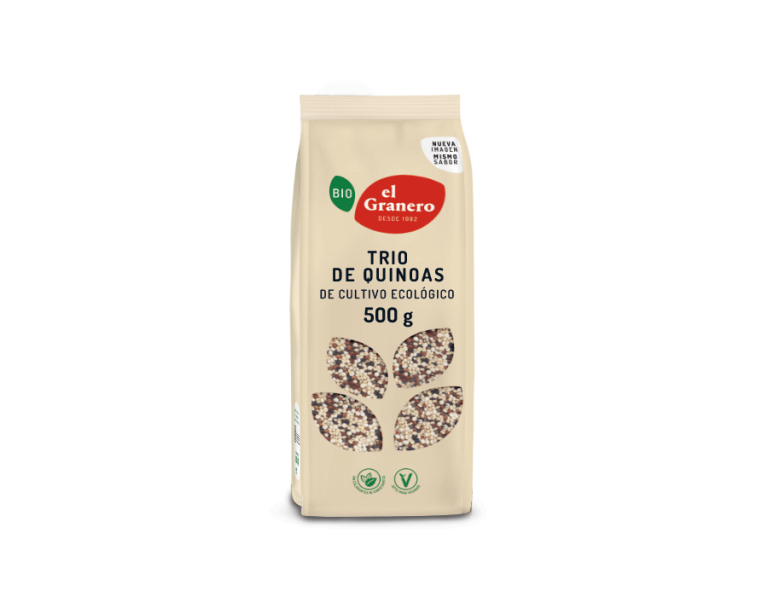 Ingredientes: quinoa real* 70%, quinoa real roja* 15%, quinoa real negra* 15%. Puede contener trazas de gluten, sésamo, soja y frutos secos.