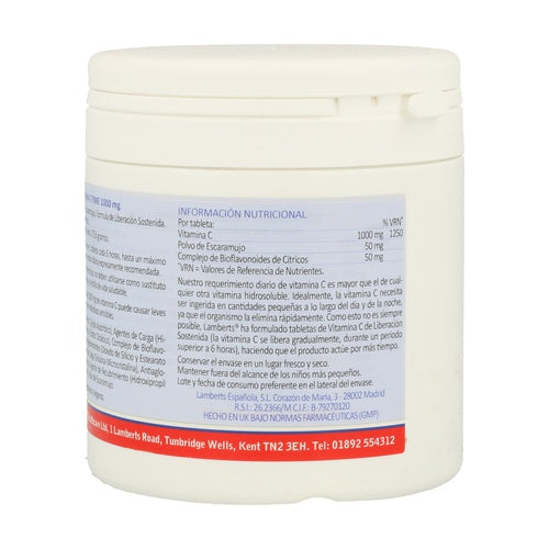 Las tabletas de vitamina C 1000mg de LAMBERTS® proporcionan niveles adecuados de vitamina C para aquellos que tienen una insuficiencia dietética de este nutriente. Estas tabletas también contienen un nivel relevante de bioflavonoides, conocidos porque facilitan la absorción de la vitamina C y tienen efectos específicos sobre el fortalecimiento de los vasos capilares. Estos bioflavonoides incluyen rutina, quercetina, citrina y hesperidina.
