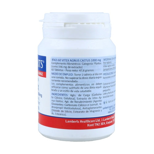 El Vitex de LAMBERTS® es un extracto estandarizado equivalente a 1000 mg de frutos de vitex desecados. Es un 0,5% de agnósidos que equivale a 0,98mg en de 200 mg de extracto. El vitex se puede utilizar junto con otros suplementos dietéticos, como la vitamina B6 y el aceite de prímula (onagra).